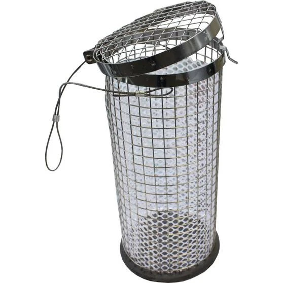 Let the fish come to you with the Viper Large Burley Cage. Made with tough marine grade stainless steel, it’s built to last for many fishing trips to come. It includes a removeable lid for you to easily fill and empty your burley, plus it can hold lead weights to sink it down into the depths of the big blue (lead weights an additional purchase).